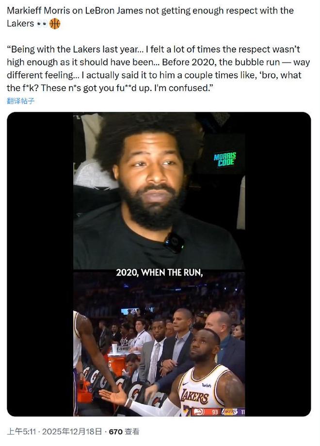 大莫里斯:自从东契奇来到湖人之后 詹皇就越来越不被人尊重了